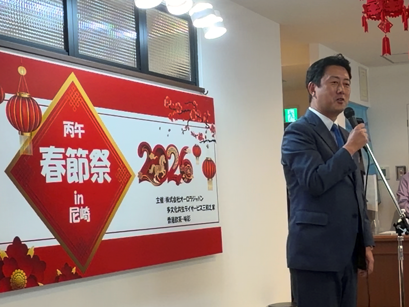 三和之家の2階部分にある香港飲茶 味彩の看板除幕式。